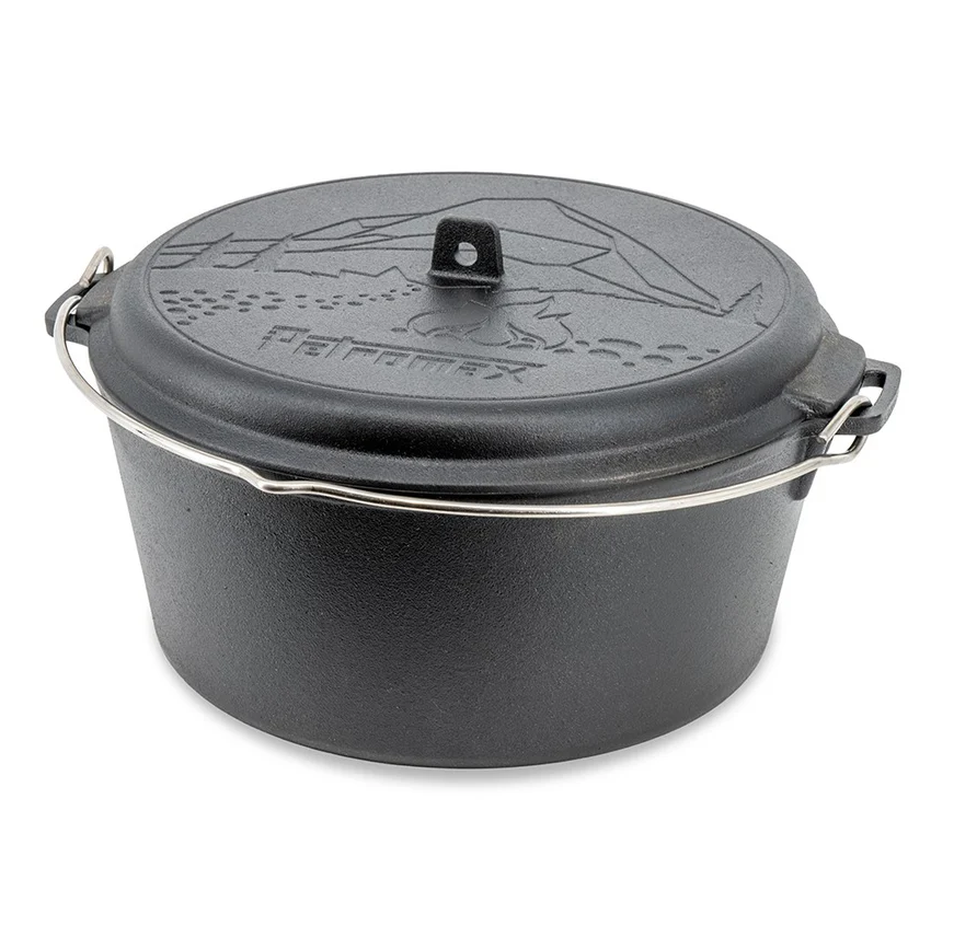 Durch die reduzierte Materialstärke bleibt der Topf leichter als klassische Dutch Oven, ohne an Stabilität zu verlieren, und lässt sich unterwegs mühelos transportieren. Mit seiner praktischen Aufhängung lässt sich der Topf direkt über das Lagerfeuer hängen und gart gleichmäßig, ohne den Boden zu berühren.