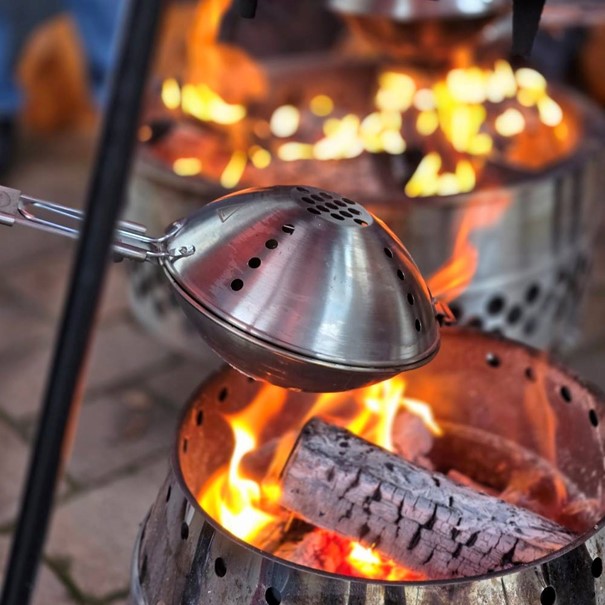 Mit dem Petromax Popcornmaker wird jedes Lagerfeuer zum Erlebnis: Die zwei robusten Schalen aus Edelstahl verwandeln bis zu 100 g Mais in knuspriges Popcorn – direkt über offenem Feuer. Der lange Stiel mit ergonomischem Buchenholzgriff sorgt dabei für angenehmen Abstand und ein authentisches Outdoor-Feeling.