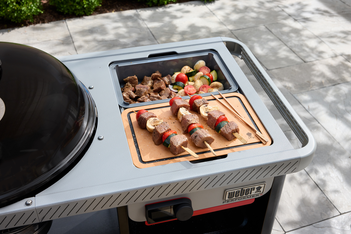Erhalte die bewährte Leistung eines Weber® Kugelgrills mit genial viel Platz zum Vorbereiten und Servieren und für das Aufbewahren von Grillutensilien sowie tollen intelligenten Features, mit denen du eine unerreichte Kontrolle über die Holzkohle bekommst – mit dem Performer Premium smarten Holzkohlegrill Ø 57 cm. Mit dem WLAN-fähigen LCD-Controller kannst du die gewünschte Temperatur erreichen, halten und anpassen, indem du einen Digitallüfter aktivierst, der Luft in die Holzkohle bläst und die Hitze perfekt für langes Grillen und Räuchern über Nacht reguliert. Mit dem Rapidfire Assist-Modus, der die Holzkohle schürt, nachdem du zuvor einen Anzünder entfacht hast, kannst du noch schneller starten und gleichzeitig vorheizen. Über die Weber Connect® App steuerst du den Grill von deinem Smartphone aus. Dieser Grill ist in einen hochwertigen Rollwagen mit zwei Regalfächern, einem Weber Works Seitentisch, der für XL Drop-In-Zubehör passt, und einer seitlichen Weber Works Schiene, in die Snap-On-Zubehör passt, eingebaut.* Zwei Räder und zwei Lenkrollen mit Stoppfunktion erleichtern das Bewegen des Grills. Grille von nun an sicher mit denselben Features wie beim legendären Weber® Kugelgrill, darunter einer von Hand aufgetragenen, porzellanemaillierten Oberfläche, die kratz- und rostbeständig ist, verstellbaren Lüftungsöffnungen, mit denen du die Temperatur im Grill manuell regeln kannst, und einem verbesserten One-Touch- Reinigungssystem, mit dem sich die Asche schnell und einfach entfernen lässt. Der Deckelhalter Tuck-Away bietet dir einen praktischen Platz, um den Deckel an der Seite des Kessels einzusetzen, und der klappbare Grillrost lässt sich auf zwei Seiten hochklappen und ist passend für rundes Gourmet BBQ System Grillzubehör, damit du noch mehr Grillmöglichkeiten