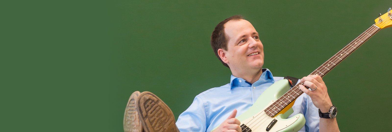 Stefan Haider begleitet sich selbst am E-Bass, seine Pointen bringen den Verstand zum Lachen, während seine Musik direkt auf die Herzen der Zuhörer zielt