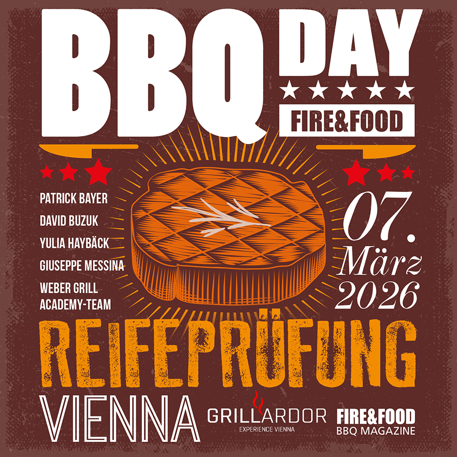 Der FIRE&FOOD BBQ Day lädt ein zur "Reifeprüfung" in Wien. Die natürliche, vollendete Reifung bleibt für Genießer und Hersteller der Qualitätsschlüssel – der Unterschied zwischen bloßer Haltbarkeit und echter Genussreife spiegelt sich zudem in der sensorischen Wahrnehmung wider. Damit stehen handwerkliche Sorgfalt und Geduld beispielhaft für den bewussten Umgang mit Lebensmitteln. Der Faktor Zeit ist der entscheidende Akteur jeder Reifung. Dies lässt sich nicht beliebig beschleunigen, ohne Kompromisse im Geschmack und in der Bekömmlichkeit einzugehen. Nimm dir eine eigene „Reifezeit“ und tauche in diesen wichtigen Aspekt der Genusswelt ein – mit den erfahrenen Genussexperten von FIRE&FOOD und dem Weber Grill Academy-Team. Mit köstlichen Gerichten der BBQ-Profis David Buzuk, Patrick Bayer, Giuseppe Messina und Yulia Haybäck.